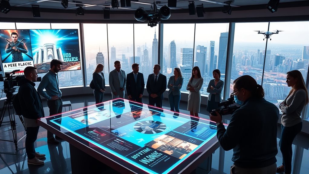 By 2026, you’ll see the film and TV industry driven by innovative virtual production, immersive streaming, and interactive stories that transform how you experience entertainment. Expect more visually stunning, customizable content where you can influence story outcomes and explore different paths. Streaming services will incorporate cutting-edge tech to deliver ultra-realistic worlds and dynamic shows. To discover how these trends will shape upcoming releases and enhance your viewing, keep exploring the exciting future ahead.