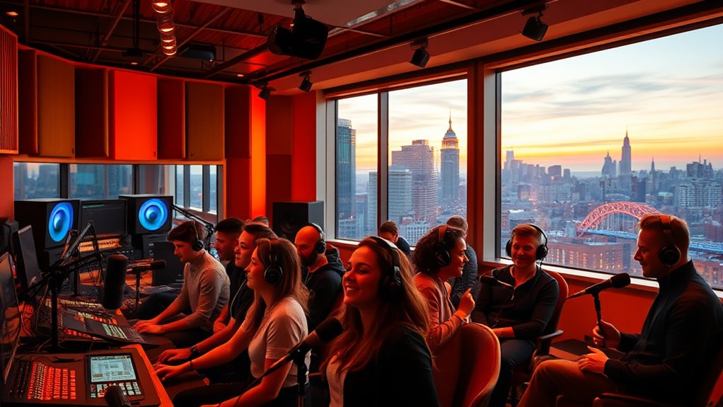 In 2025, the podcast boom keeps growing as new content formats and audience engagement strategies capture listeners’ attention. Platforms offer tools that let creators personalize shows, involve audiences through live sessions and polls, and build community loyalty. Monetization also evolves beyond ads, with memberships, merchandise, and live events becoming common income sources. This ongoing evolution means there’s plenty more to discover about how audio content continues to expand its influence—keep exploring to find out more.