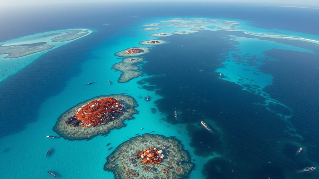 The oceans are in serious trouble due to pollution, habitat loss, and climate change, threatening marine biodiversity and coastal communities. Overfishing, habitat destruction like coral reef damage, and rising sea levels worsen the crisis. If you care about the planet’s health and your future, it’s vital to understand these issues and what can be done. Keep exploring to discover how you can help protect our oceans and secure a sustainable tomorrow.