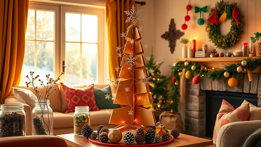 Get ready to personalize your holiday season with creative, budget-friendly DIY decorations in 2025. Use sustainable materials like recycled paper, natural elements, and upcycled items to craft unique ornaments, wreaths, and centerpieces. Incorporate vintage pieces for character and mix textures for an eclectic look. Whether you’re making clay ornaments or arranging fresh pinecones, these projects add a heartfelt touch to your festivities. Keep exploring ways to make your holiday decor truly special.