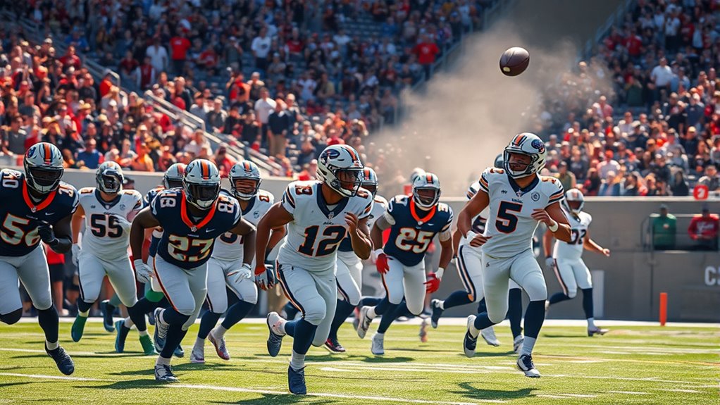 As you watch the NFL playoffs unfold, it’s clear surprises keep everyone on their toes, like lightning striking a familiar storm. The contenders rise and fall, painting a picture of unpredictable brilliance. Remember, just as a dark horse can suddenly shine, this season’s surprises hint that anything’s possible—imagine the field shimmering with hope and tension, ready to rewrite history in a blink. The playoffs aren’t just a game; they’re a thrilling dance of destiny.