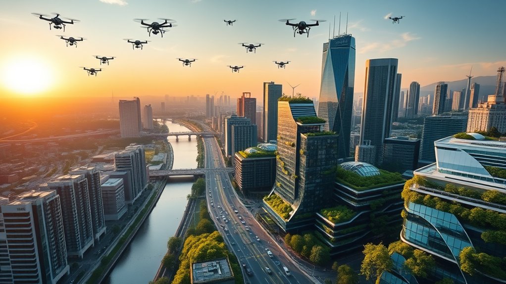 Additionally, AI enhances climate modeling, allowing you to better understand future scenarios and plan accordingly. By processing enormous datasets—climate data, satellite images, and environmental reports—AI helps create more accurate predictions of extreme weather events, sea-level rise, and other climate phenomena. This foresight allows communities to prepare better, minimizing damage and safeguarding vulnerable populations. Furthermore, AI supports smart urban planning, optimizing transportation systems, and reducing emissions. Cities can analyze traffic flows, suggest eco-friendly routes, and promote sustainable practices more effectively with AI insights, making urban environments more resilient to climate impacts.