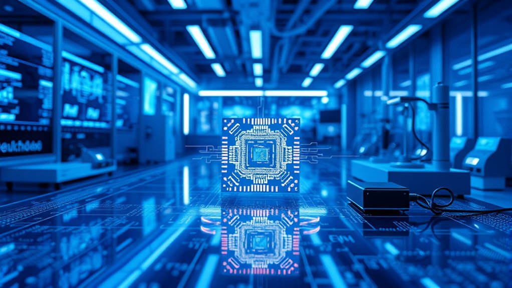 What does the future of computing hold, and how will it transform our lives? As technology advances, traditional silicon-based chips are nearing their physical limits, prompting experts to explore revolutionary alternatives like quantum computing and neuromorphic processors. These innovations promise to reshape what’s possible, moving beyond Moore’s Law’s slowing pace. Quantum computing, in particular, leverages the strange properties of quantum mechanics, allowing qubits to perform complex calculations at speeds unthinkable with classical processors. Instead of simply adding more transistors, quantum systems use superposition and entanglement to process multiple possibilities simultaneously. This could revolutionize fields like cryptography, optimization, and drug discovery, enabling solutions that are currently out of reach. While quantum computers are still in their infancy, significant breakthroughs are happening, and in the near future, they could complement traditional computers or even replace certain tasks altogether. Furthermore, ongoing research into the physical limitations of silicon chips highlights the urgent need for these revolutionary technologies to sustain computing progress. Meanwhile, neuromorphic processors are another exciting frontier. Inspired by the human brain’s architecture, these chips mimic neural networks to achieve high efficiency and adaptability. Unlike traditional processors that rely on sequential operations, neuromorphic systems process information in parallel, making them ideal for tasks that require pattern recognition, sensory processing, and machine learning. You’ll find these chips making their way into autonomous vehicles, robotics, and smart devices, where real-time decision-making and low power consumption are critical. Neuromorphic processors offer a different approach to computing’s future—one that emphasizes efficiency and learning capabilities, rather than sheer speed alone. As they develop, they could bridge the gap between artificial intelligence and real-world applications, providing more human-like cognition in machines. Together, quantum computing and neuromorphic processors represent a shift from the era of incremental improvements dictated by Moore’s Law to a new paradigm of specialized, powerful, and efficient systems. They challenge the notion that doubling transistors on a chip every couple of years is the sole path to progress. Instead, you’re likely to see hybrid systems that combine classical, quantum, and neuromorphic elements, each optimized for different tasks. This convergence will enable smarter, more capable devices that transform industries, healthcare, and everyday life. As these technologies mature, you’ll notice a world where computing adapts more closely to human needs—faster, smarter, and more intuitive than ever before. Moore’s Law may be slowing down, but innovation is far from stopping; it’s just taking on new forms that will redefine what’s possible.
