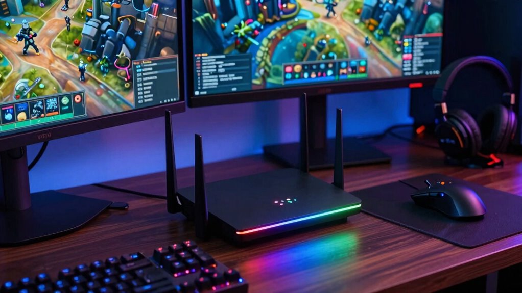 Gaming routers prioritize bandwidth for multiple devices through device prioritization and bandwidth allocation features. You can assign priority levels to your devices, ensuring gaming or streaming devices get the bandwidth they need first. The router dynamically manages network traffic, allocating bandwidth efficiently based on these priorities. This way, your high-demand devices stay connected smoothly, reducing lag and buffering, even when multiple devices are active on your network.