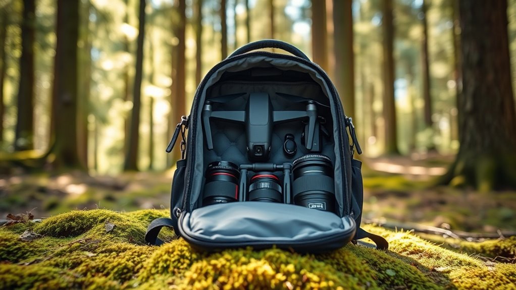 When choosing a camera backpack, how it’s organized can make a big difference in your workflow and convenience. I look for backpacks with customizable dividers and compartments, so I can tailor storage for my lenses, bodies, and accessories. Multiple accessible pockets, both inside and outside, help me quickly grab batteries, SD cards, or filters without rummaging. Dedicated sections for my laptop and tablet keep my electronics protected and within reach, saving time during shoots. External straps and pockets are essential for securing tripods, water bottles, or gimbals, especially when on the move. A well-designed internal layout maximizes space, stacking and separating gear efficiently, reducing clutter and preventing damage. A smart storage system helps me stay organized, so I can focus on capturing great shots rather than hunting for gear.