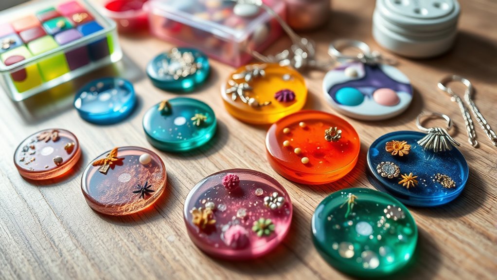If you’re looking to spark your creativity in 2025, I’ve found the top resin jewelry kits that cater to all skill levels. From beginner-friendly sets with simple molds and clear instructions to professional-grade tools for intricate designs, these kits include high-quality resins, versatile molds, and fun fillers. They make crafting earrings, pendants, or customized gifts easy and enjoyable. Stick around, and you’ll discover the best options to elevate your jewelry making experience.