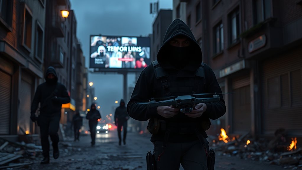 Cyberterrorism will be a shadow lurking behind digital curtains in 2025, targeting your cyber defenses to destabilize systems and steal sensitive data. You’ll see terrorists exploit social media for digital recruitment, spreading propaganda and radicalization faster than ever. As they harness technology’s dark side, staying vigilant, enhancing cyber defenses, and monitoring online activity will be your best shields against these unseen threats, turning digital battlegrounds into new frontlines.